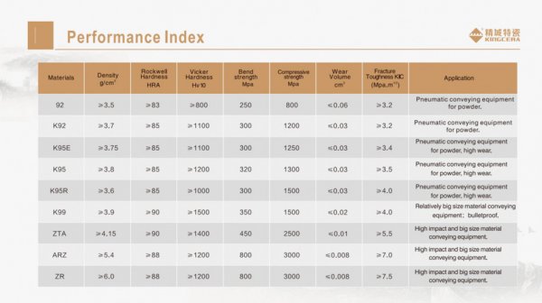3.According to the bulk material handle volume, different ceramic materials will be recommended. Kingcera has series of ceramic materials that can meet different application and the have different wear life. We have alumina ceramic, ZTA ceramic, Zirconia ceramic as well as the metallic Titanium Carbide ceramic.